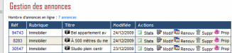 • Dans la liste des annonces, identifier l'annonce à supprimer.